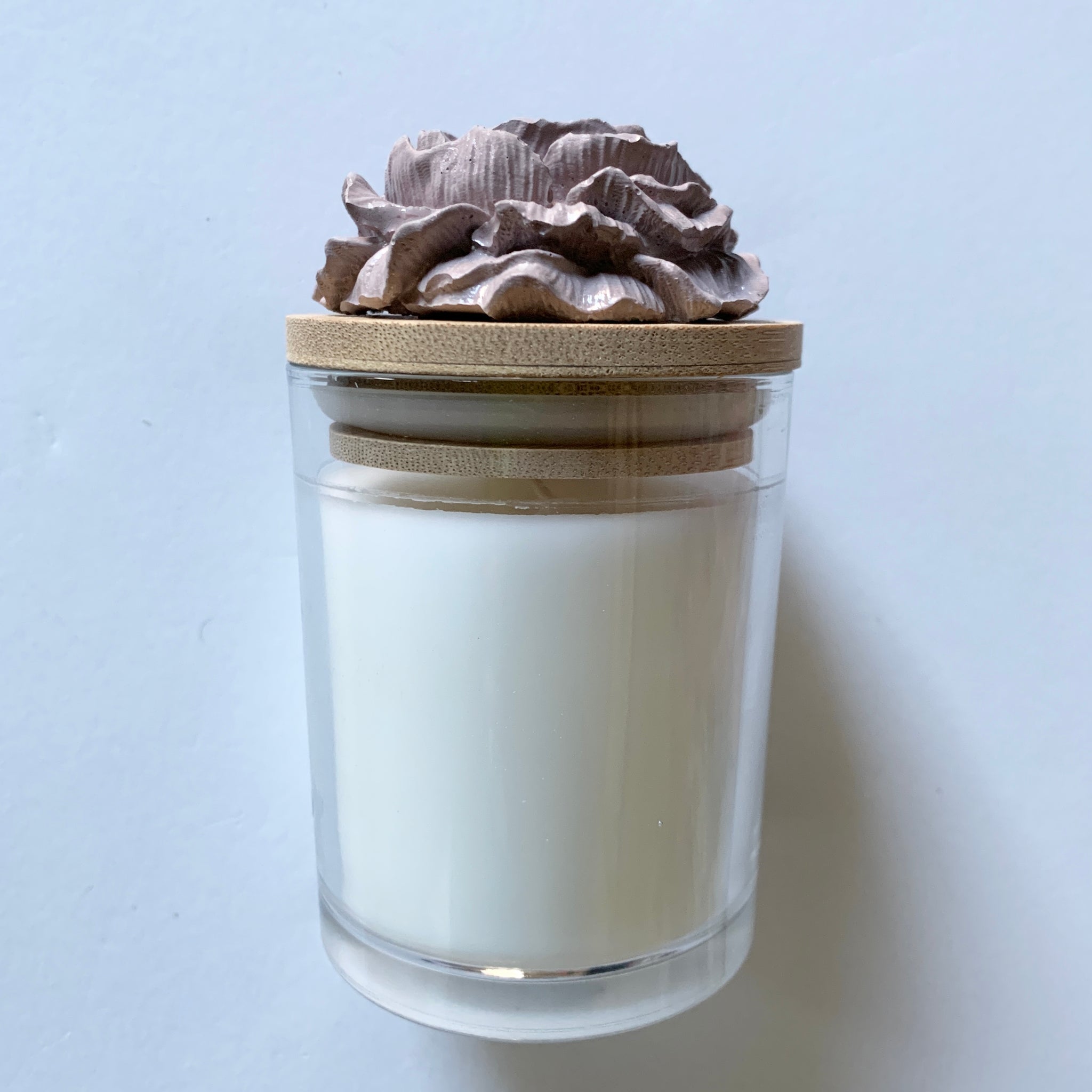 Bring a little floral-inspired charm into your space with these one-of-a-kind glass jars. Each jar is topped with a concrete Peony and filled with a coconut, soy wax candle (your choice of scented or unscented.![]()