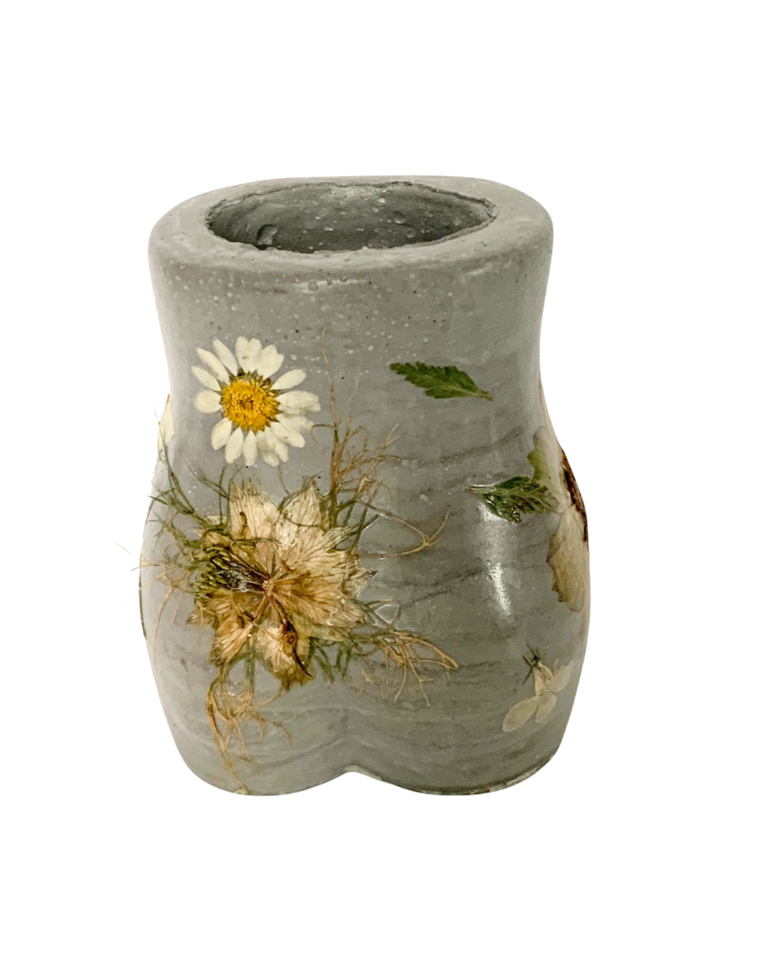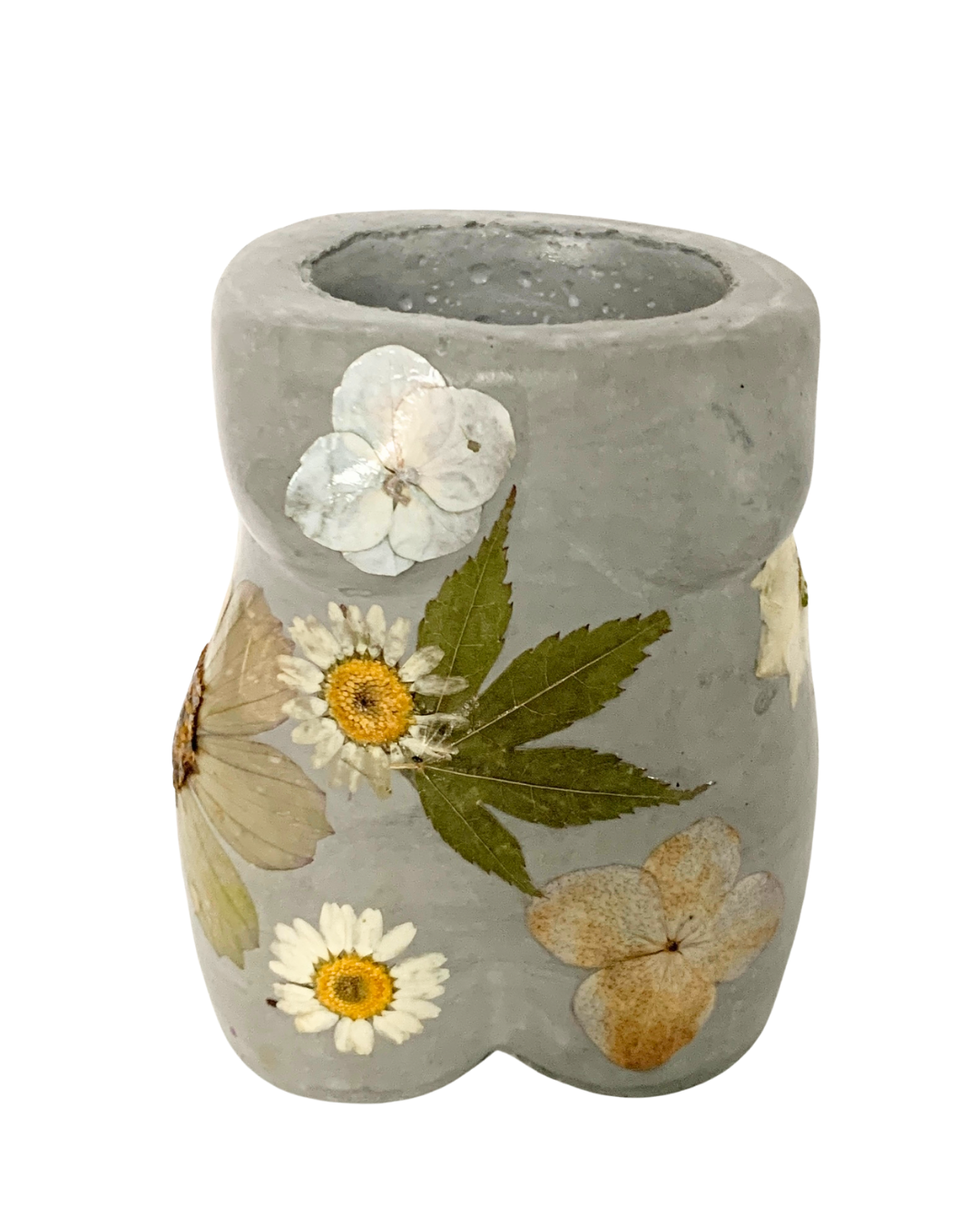 Floral is always in fashion! This silhouette -- decorated with dried, pressed flowers -- is the perfect piece for any area. "Your Highness" is not only a great conversation piece, she also has the ability to make anything she touches or carries look a million times better. Just like any woman, she's beautiful and one of a kind.